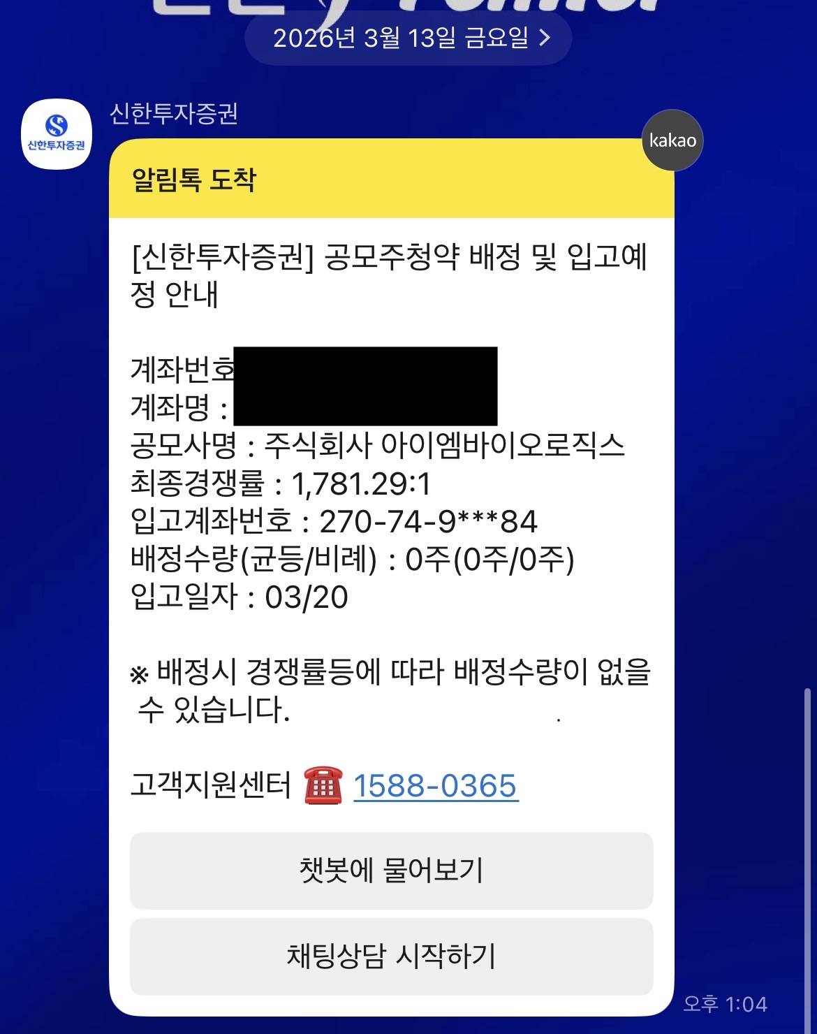 아이엠바이오로직스 공모주 0주 배정 결과